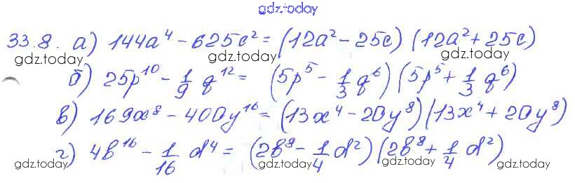 На страницах сайта gdz.today вы найдете учебный и вспомогательный материал, направленный на улучшения знаний школьной программы. ГДЗ - онлайн мир знаний § 33. Разложение многочленов на множители с помощью формул сокращенного умножения Решение к главе 7 8 Задачнику по Алгебре для 7 класса Мордкович, Александрова Базовый уровень Мнемозина 2013