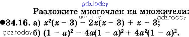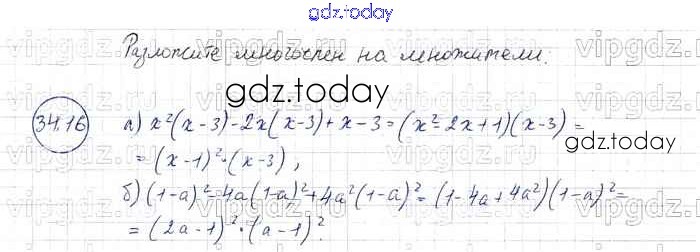 На страницах сайта gdz.today вы найдете учебный и вспомогательный материал, направленный на улучшения знаний школьной программы. ГДЗ - онлайн мир знаний § 34. Разложение многочленов на множители с помощью комбинаций различных приемов Решение к главе 7 16 Задачнику по Алгебре для 7 класса Мордкович, Александрова Базовый уровень Мнемозина 2013