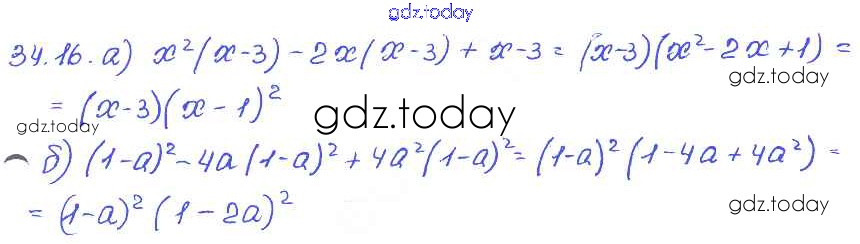 Ответы к § 34. Разложение многочленов на множители с помощью комбинаций различных приемов Решение к главе 7 16 Задачнику по Алгебре для 7 класса Мордкович, Александрова Базовый уровень Мнемозина 2013