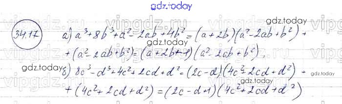 Ответы к § 34. Разложение многочленов на множители с помощью комбинаций различных приемов Решение к главе 7 17 Задачнику по Алгебре для 7 класса Мордкович, Александрова Базовый уровень Мнемозина 2013