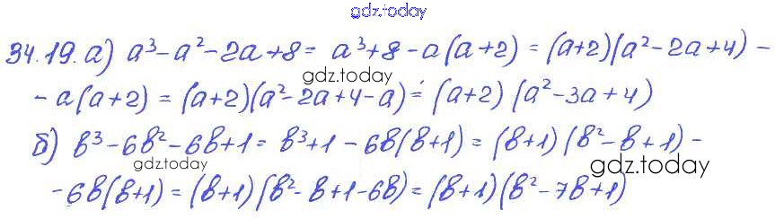 На страницах сайта gdz.today вы найдете учебный и вспомогательный материал, направленный на улучшения знаний школьной программы. ГДЗ - онлайн мир знаний § 34. Разложение многочленов на множители с помощью комбинаций различных приемов Решение к главе 7 19 Задачнику по Алгебре для 7 класса Мордкович, Александрова Базовый уровень Мнемозина 2013