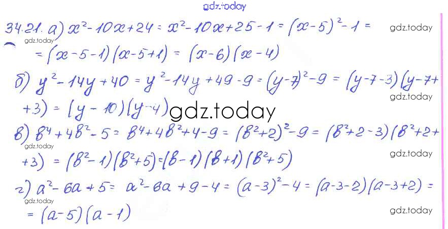 Ответы к § 34. Разложение многочленов на множители с помощью комбинаций различных приемов Решение к главе 7 21 Задачнику по Алгебре для 7 класса Мордкович, Александрова Базовый уровень Мнемозина 2013
