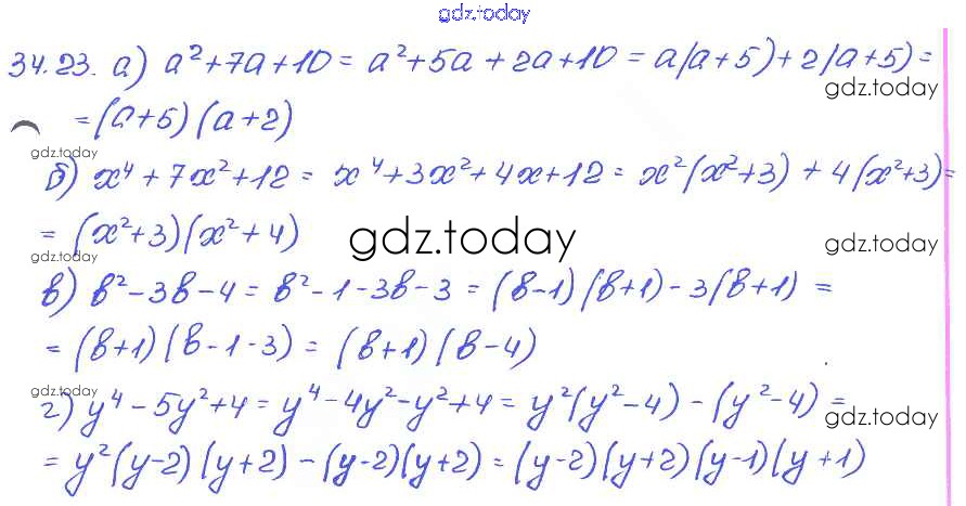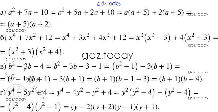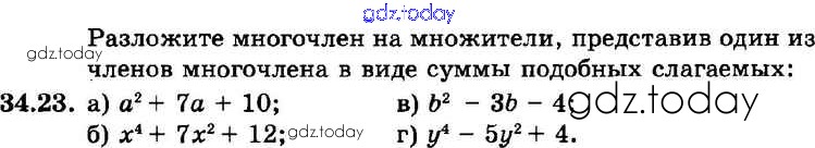 На страницах сайта gdz.today вы найдете учебный и вспомогательный материал, направленный на улучшения знаний школьной программы. ГДЗ - онлайн мир знаний § 34. Разложение многочленов на множители с помощью комбинаций различных приемов Решение к главе 7 23 Задачнику по Алгебре для 7 класса Мордкович, Александрова Базовый уровень Мнемозина 2013