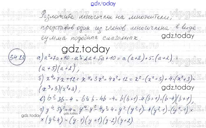 Ответы к § 34. Разложение многочленов на множители с помощью комбинаций различных приемов Решение к главе 7 23 Задачнику по Алгебре для 7 класса Мордкович, Александрова Базовый уровень Мнемозина 2013