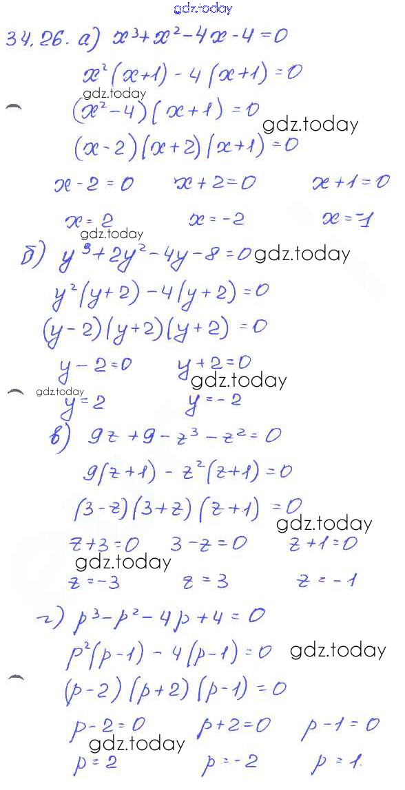 Ответы к § 34. Разложение многочленов на множители с помощью комбинаций различных приемов Решение к главе 7 26 Задачнику по Алгебре для 7 класса Мордкович, Александрова Базовый уровень Мнемозина 2013