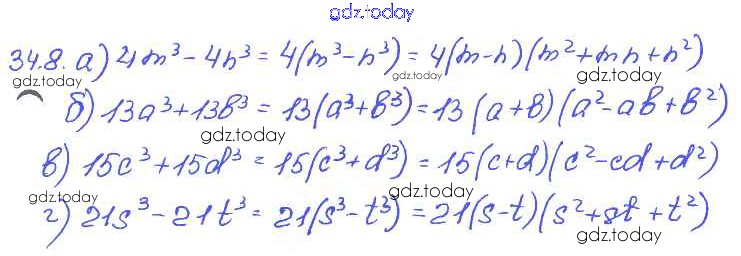 Ответы к § 34. Разложение многочленов на множители с помощью комбинаций различных приемов Решение к главе 7 8 Задачнику по Алгебре для 7 класса Мордкович, Александрова Базовый уровень Мнемозина 2013