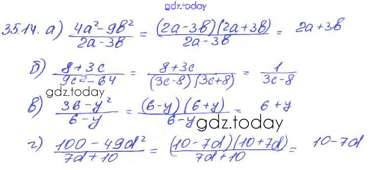 На страницах сайта gdz.today вы найдете учебный и вспомогательный материал, направленный на улучшения знаний школьной программы. ГДЗ - онлайн мир знаний § 35. Сокращение алгебраических дробей Решение к главе 7 14 Задачнику по Алгебре для 7 класса Мордкович, Александрова Базовый уровень Мнемозина 2013