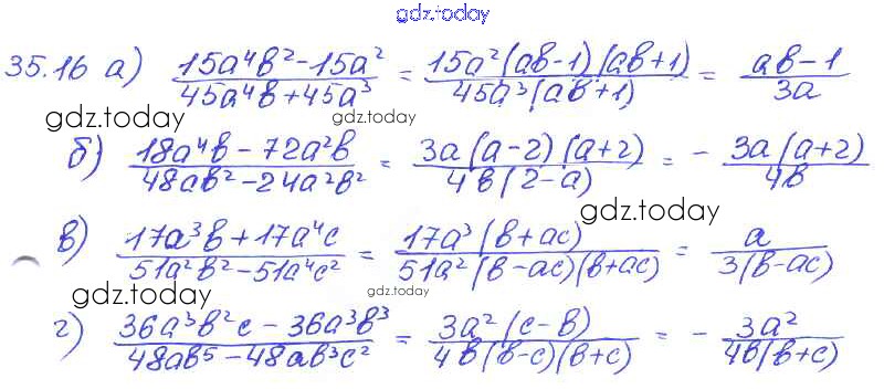 На страницах сайта gdz.today вы найдете учебный и вспомогательный материал, направленный на улучшения знаний школьной программы. ГДЗ - онлайн мир знаний § 35. Сокращение алгебраических дробей Решение к главе 7 16 Задачнику по Алгебре для 7 класса Мордкович, Александрова Базовый уровень Мнемозина 2013