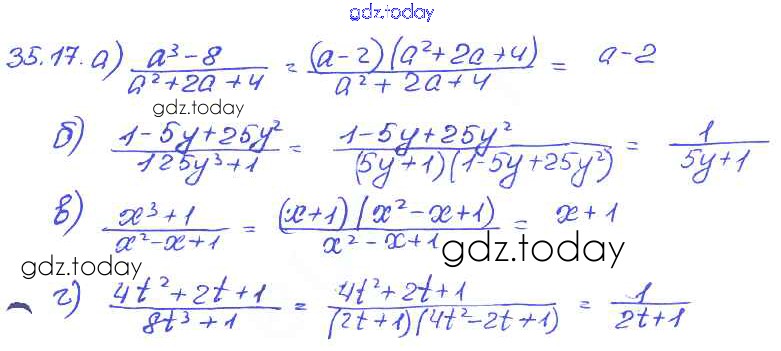 На страницах сайта gdz.today вы найдете учебный и вспомогательный материал, направленный на улучшения знаний школьной программы. ГДЗ - онлайн мир знаний § 35. Сокращение алгебраических дробей Решение к главе 7 17 Задачнику по Алгебре для 7 класса Мордкович, Александрова Базовый уровень Мнемозина 2013