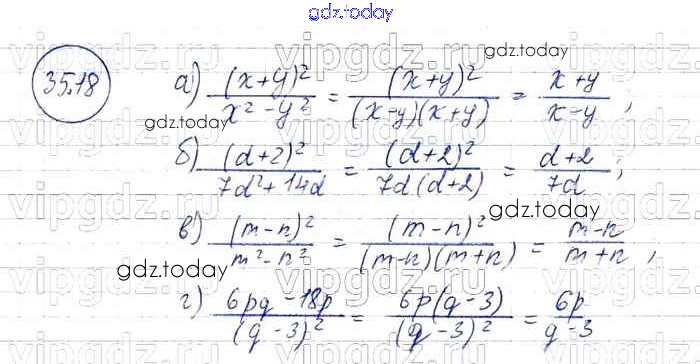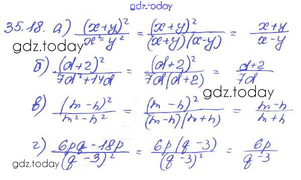 Ответы к § 35. Сокращение алгебраических дробей Решение к главе 7 18 Задачнику по Алгебре для 7 класса Мордкович, Александрова Базовый уровень Мнемозина 2013