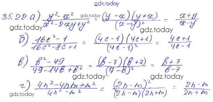 Ответы к § 35. Сокращение алгебраических дробей Решение к главе 7 22 Задачнику по Алгебре для 7 класса Мордкович, Александрова Базовый уровень Мнемозина 2013