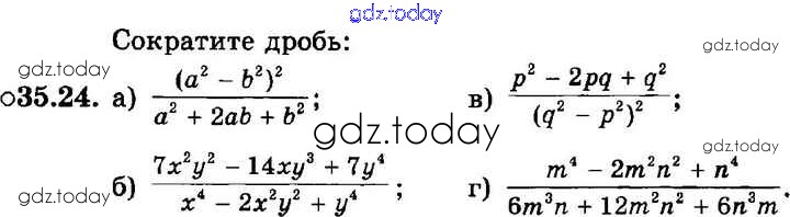 На страницах сайта gdz.today вы найдете учебный и вспомогательный материал, направленный на улучшения знаний школьной программы. ГДЗ - онлайн мир знаний § 35. Сокращение алгебраических дробей Решение к главе 7 24 Задачнику по Алгебре для 7 класса Мордкович, Александрова Базовый уровень Мнемозина 2013