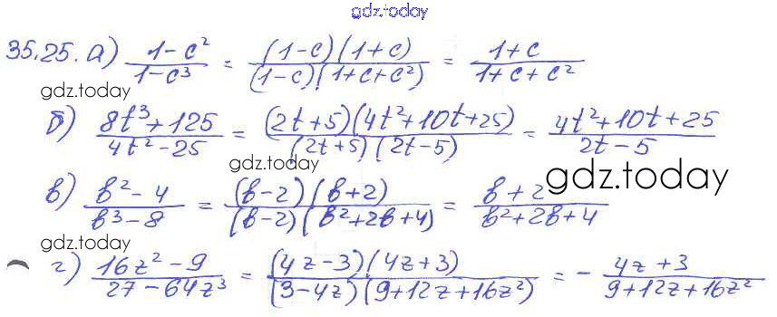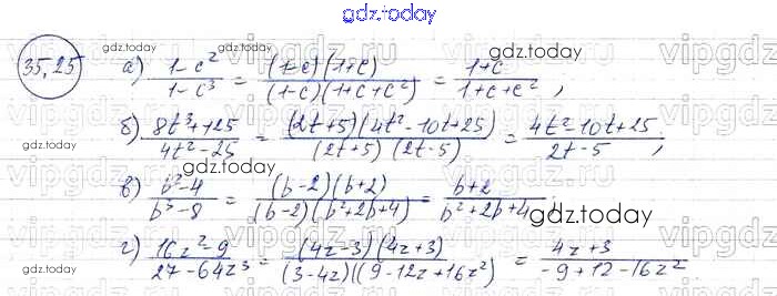 Ответы к § 35. Сокращение алгебраических дробей Решение к главе 7 25 Задачнику по Алгебре для 7 класса Мордкович, Александрова Базовый уровень Мнемозина 2013