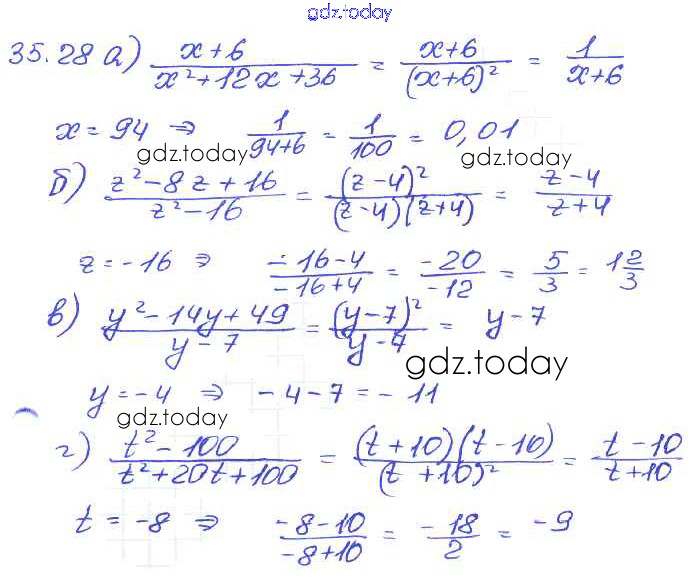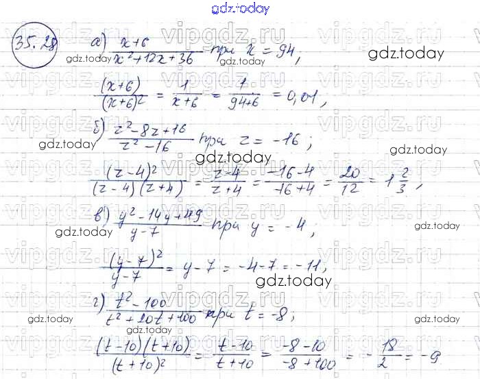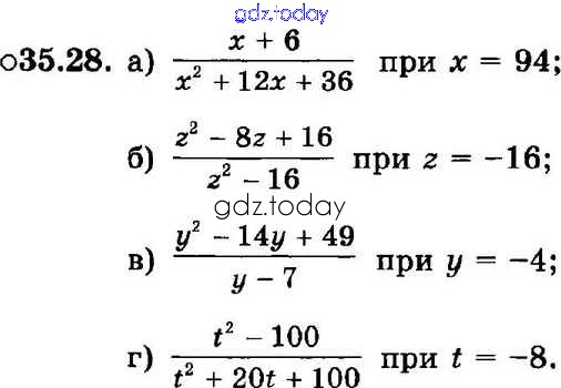 Ответы к § 35. Сокращение алгебраических дробей Решение к главе 7 28 Задачнику по Алгебре для 7 класса Мордкович, Александрова Базовый уровень Мнемозина 2013