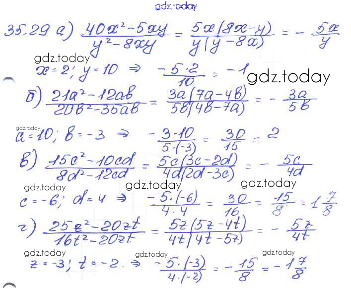 На страницах сайта gdz.today вы найдете учебный и вспомогательный материал, направленный на улучшения знаний школьной программы. ГДЗ - онлайн мир знаний § 35. Сокращение алгебраических дробей Решение к главе 7 29 Задачнику по Алгебре для 7 класса Мордкович, Александрова Базовый уровень Мнемозина 2013