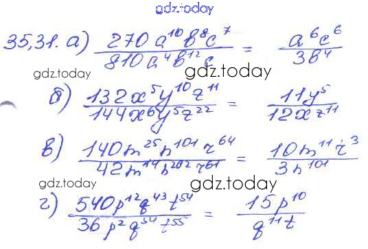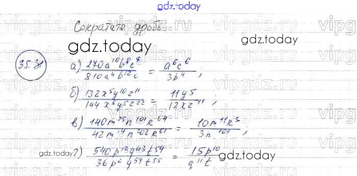 Ответы к § 35. Сокращение алгебраических дробей Решение к главе 7 31 Задачнику по Алгебре для 7 класса Мордкович, Александрова Базовый уровень Мнемозина 2013