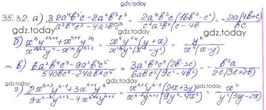 Ответы к § 35. Сокращение алгебраических дробей Решение к главе 7 32 Задачнику по Алгебре для 7 класса Мордкович, Александрова Базовый уровень Мнемозина 2013