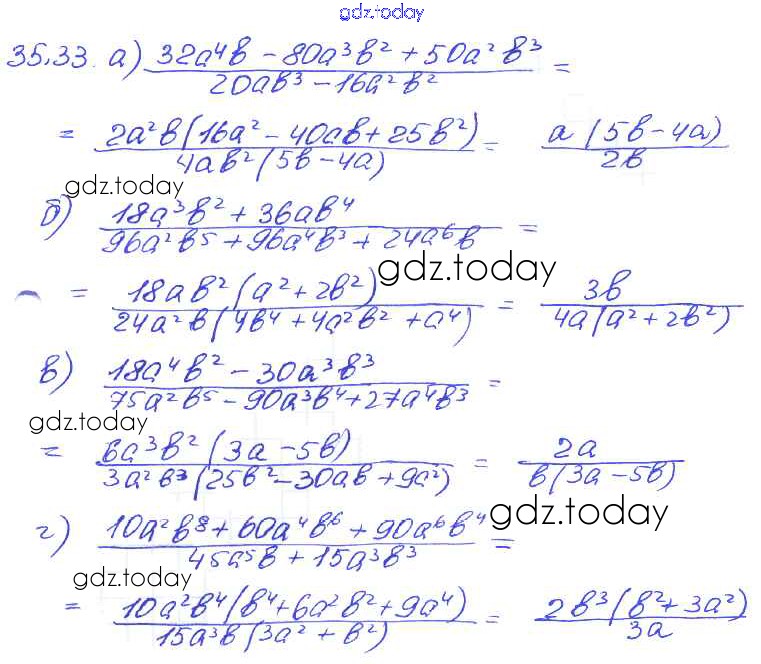 На страницах сайта gdz.today вы найдете учебный и вспомогательный материал, направленный на улучшения знаний школьной программы. ГДЗ - онлайн мир знаний § 35. Сокращение алгебраических дробей Решение к главе 7 33 Задачнику по Алгебре для 7 класса Мордкович, Александрова Базовый уровень Мнемозина 2013