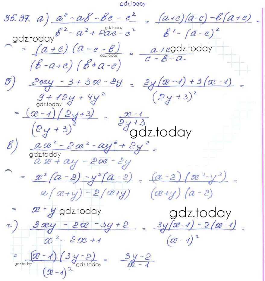 Ответы к § 35. Сокращение алгебраических дробей Решение к главе 7 37 Задачнику по Алгебре для 7 класса Мордкович, Александрова Базовый уровень Мнемозина 2013