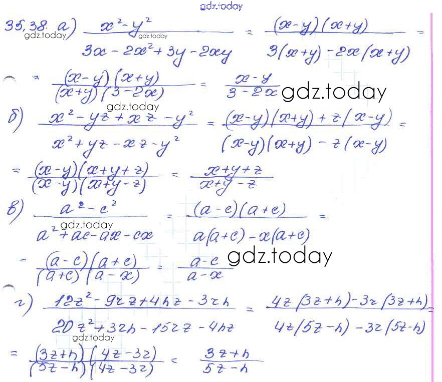 Ответы к § 35. Сокращение алгебраических дробей Решение к главе 7 38 Задачнику по Алгебре для 7 класса Мордкович, Александрова Базовый уровень Мнемозина 2013