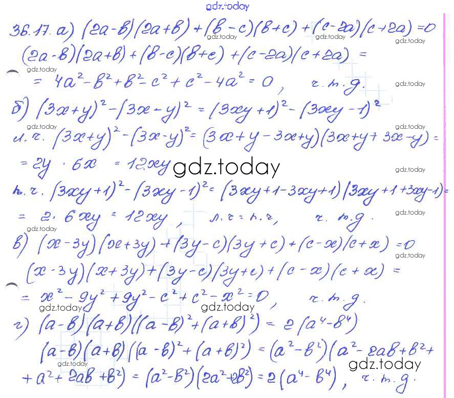 На страницах сайта gdz.today вы найдете учебный и вспомогательный материал, направленный на улучшения знаний школьной программы. ГДЗ - онлайн мир знаний § 36. Тождества Решение к главе 7 17 Задачнику по Алгебре для 7 класса Мордкович, Александрова Базовый уровень Мнемозина 2013