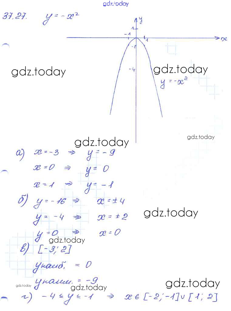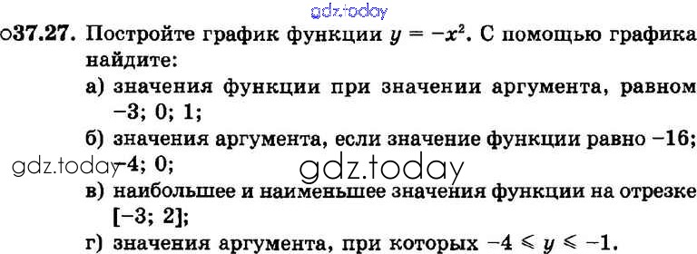 На страницах сайта gdz.today вы найдете учебный и вспомогательный материал, направленный на улучшения знаний школьной программы. ГДЗ - онлайн мир знаний § 37. Функция у = х2 и ее график Решение к главе 8 27 Задачнику по Алгебре для 7 класса Мордкович, Александрова Базовый уровень Мнемозина 2013