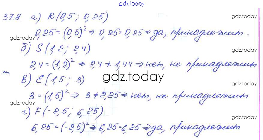 Ответы к § 37. Функция у = х2 и ее график Решение к главе 8 8 Задачнику по Алгебре для 7 класса Мордкович, Александрова Базовый уровень Мнемозина 2013