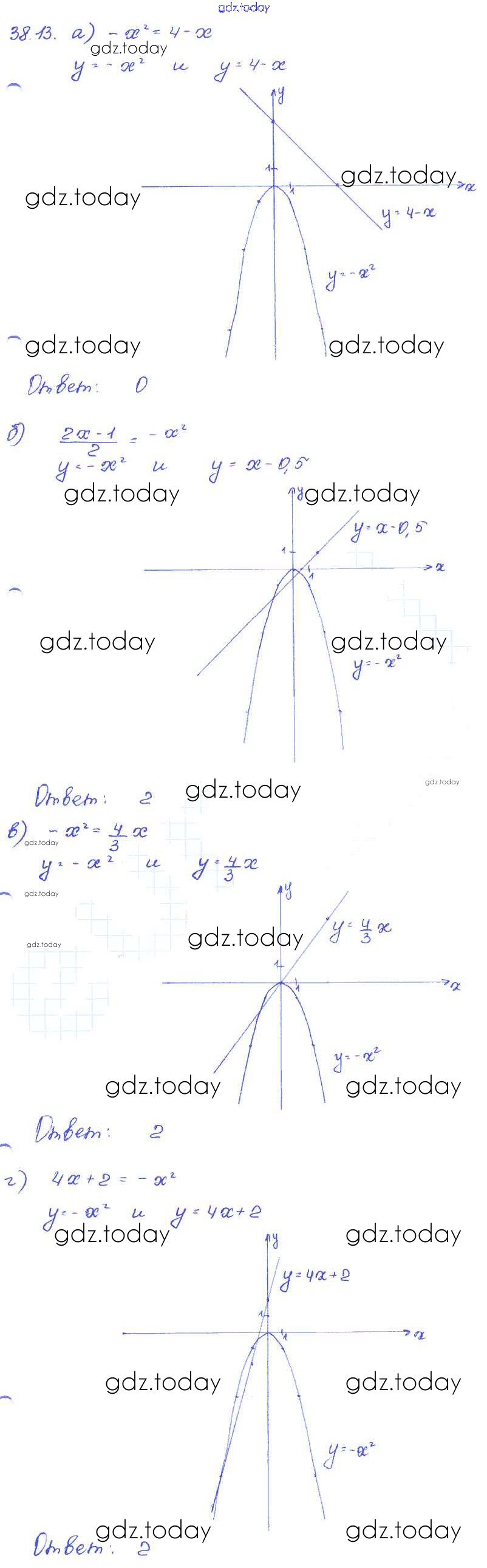 На страницах сайта gdz.today вы найдете учебный и вспомогательный материал, направленный на улучшения знаний школьной программы. ГДЗ - онлайн мир знаний § 38. Графическое решение уравнений Решение к главе 8 13 Задачнику по Алгебре для 7 класса Мордкович, Александрова Базовый уровень Мнемозина 2013