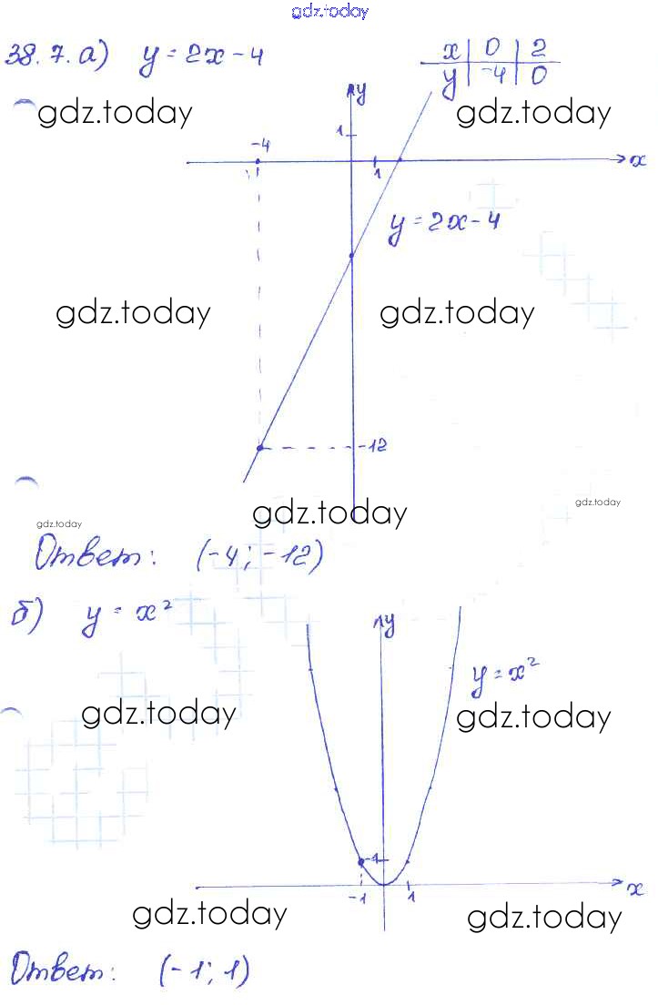 Ответы к § 38. Графическое решение уравнений Решение к главе 8 7 Задачнику по Алгебре для 7 класса Мордкович, Александрова Базовый уровень Мнемозина 2013