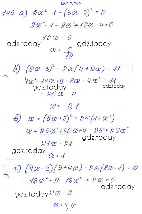 На страницах сайта gdz.today вы найдете учебный и вспомогательный материал, направленный на улучшения знаний школьной программы. ГДЗ - онлайн мир знаний Решение к главе 9. Итоговое повторение 145 Задачнику по Алгебре для 7 класса Мордкович, Александрова Базовый уровень Мнемозина 2013