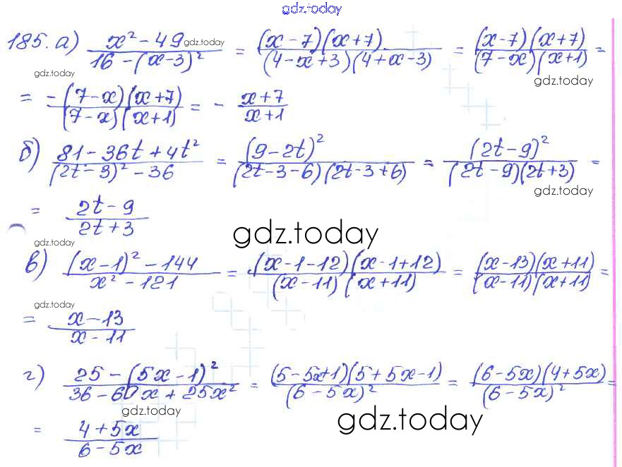 На страницах сайта gdz.today вы найдете учебный и вспомогательный материал, направленный на улучшения знаний школьной программы. ГДЗ - онлайн мир знаний Решение к главе 9. Итоговое повторение 185 Задачнику по Алгебре для 7 класса Мордкович, Александрова Базовый уровень Мнемозина 2013