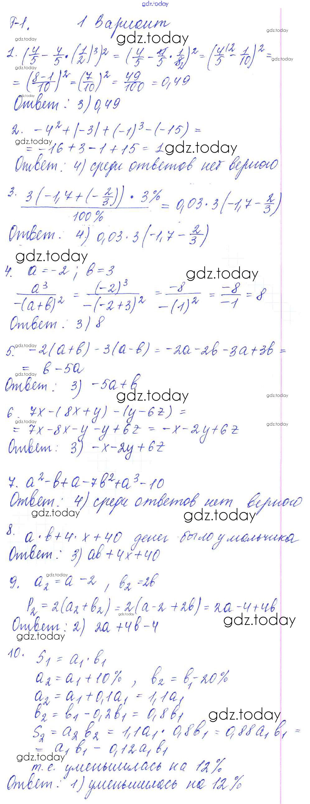 На страницах сайта gdz.today вы найдете учебный и вспомогательный материал, направленный на улучшения знаний школьной программы. ГДЗ - онлайн мир знаний Тест 1 Решение к тестам Вариант 1 Дидактическим материалам по Алгебре для 7 класса Звавич, Дьяконова Экзамен УМК 2018