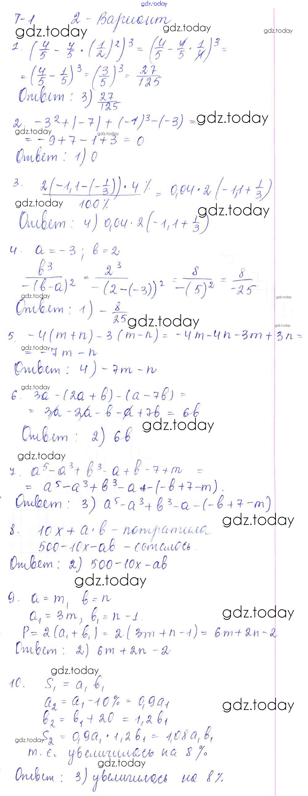На страницах сайта gdz.today вы найдете учебный и вспомогательный материал, направленный на улучшения знаний школьной программы. ГДЗ - онлайн мир знаний Тест 1 Решение к тестам Вариант 2 Дидактическим материалам по Алгебре для 7 класса Звавич, Дьяконова Экзамен УМК 2018