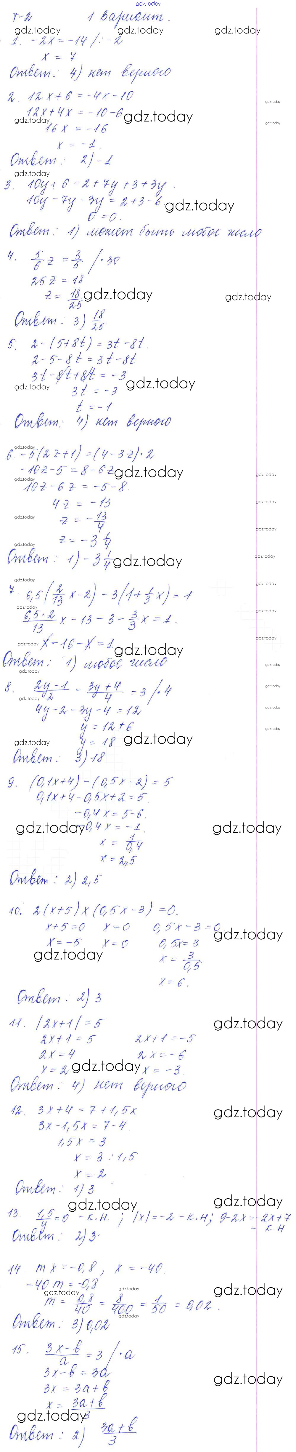 Ответы к Тест 2 Решение к тестам Вариант 1 Дидактическим материалам по Алгебре для 7 класса Звавич, Дьяконова Экзамен УМК 2018