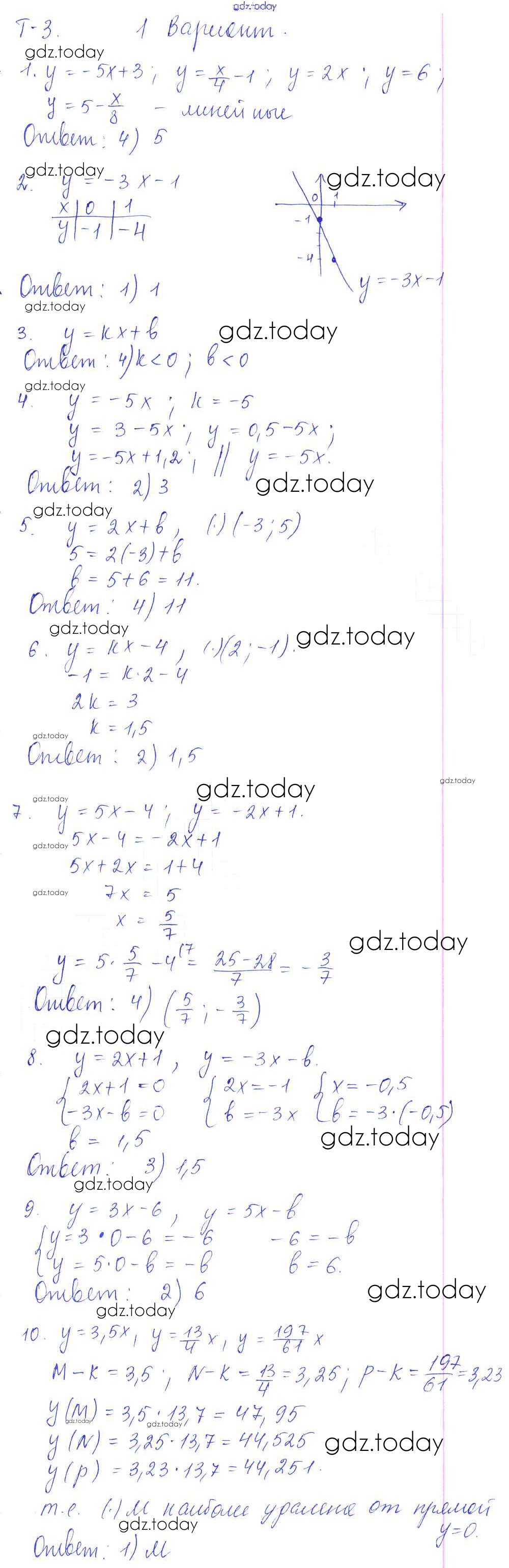 Ответы к Тест 3 Решение к тестам Вариант 1 Дидактическим материалам по Алгебре для 7 класса Звавич, Дьяконова Экзамен УМК 2018