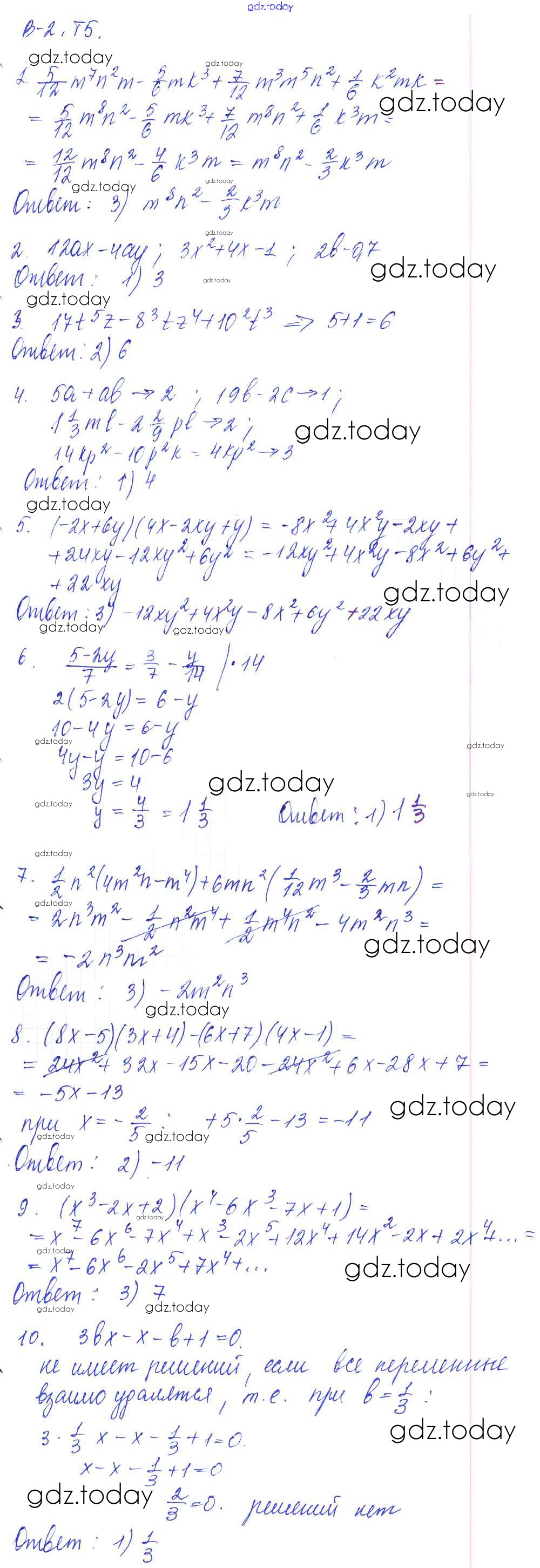 Ответы к Тест 5 Решение к тестам Вариант 2 Дидактическим материалам по Алгебре для 7 класса Звавич, Дьяконова Экзамен УМК 2018