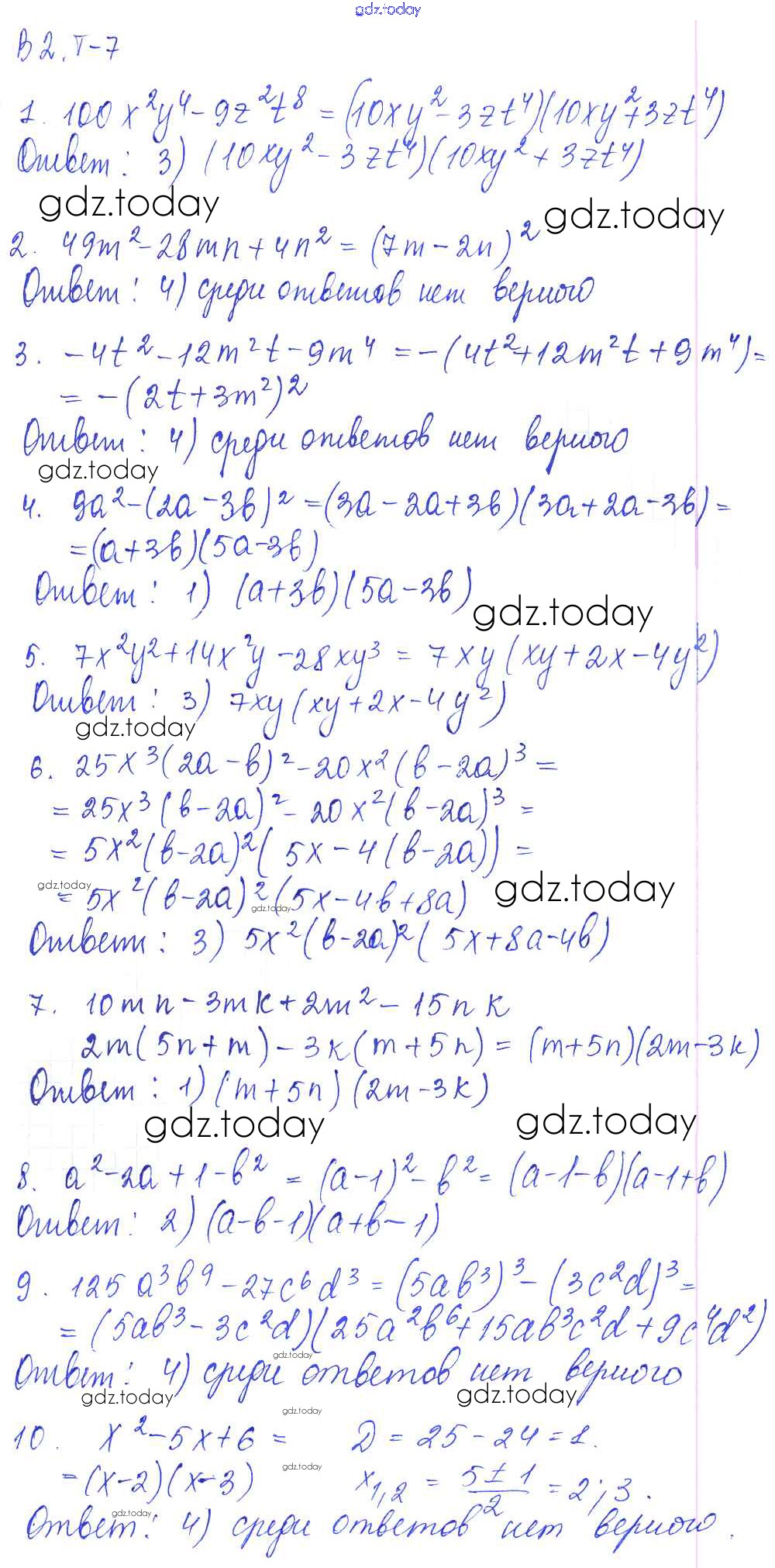 На страницах сайта gdz.today вы найдете учебный и вспомогательный материал, направленный на улучшения знаний школьной программы. ГДЗ - онлайн мир знаний Тест 7 Решение к тестам Вариант 2 Дидактическим материалам по Алгебре для 7 класса Звавич, Дьяконова Экзамен УМК 2018