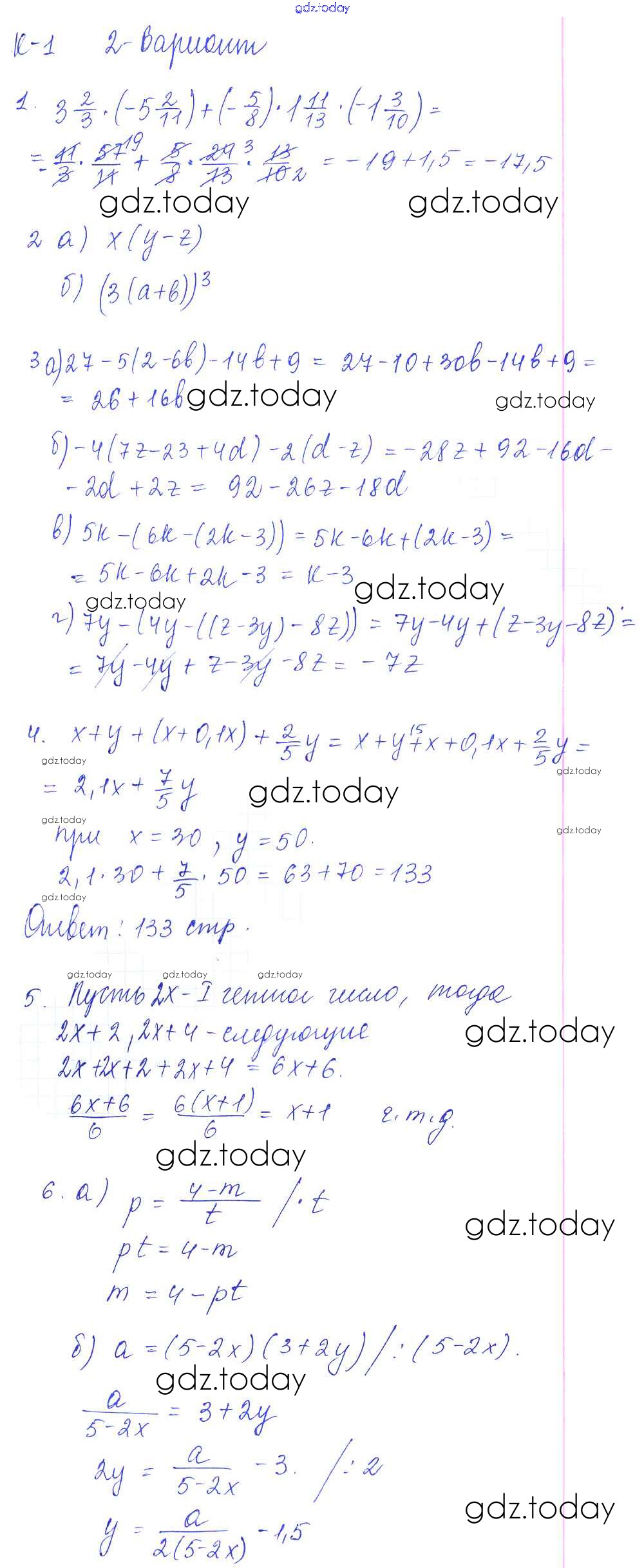 На страницах сайта gdz.today вы найдете учебный и вспомогательный материал, направленный на улучшения знаний школьной программы. ГДЗ - онлайн мир знаний КР-1 Решение к контрольным работам Вариант 2 Дидактическим материалам по Алгебре для 7 класса Звавич, Дьяконова Экзамен УМК 2018