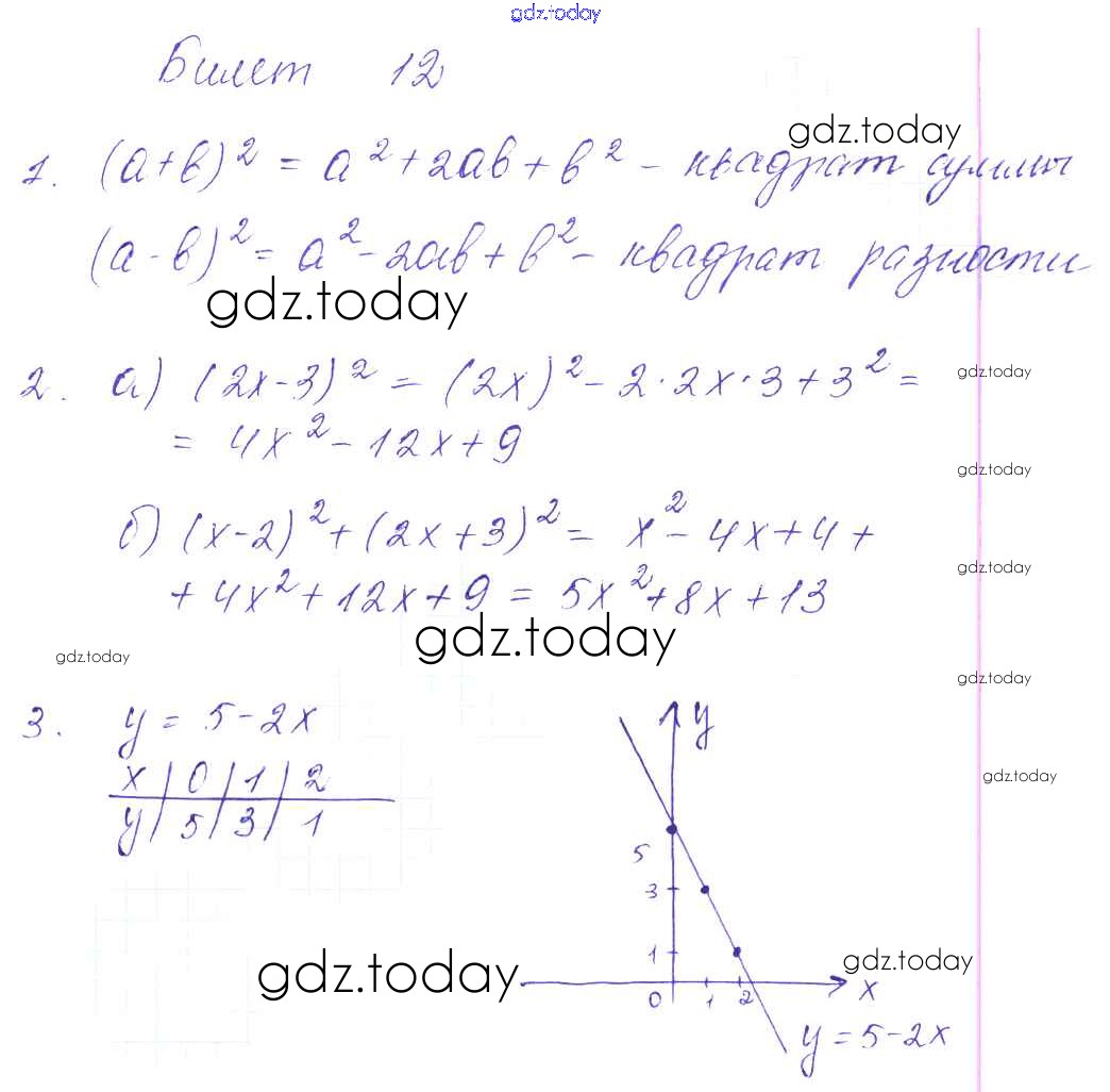 На страницах сайта gdz.today вы найдете учебный и вспомогательный материал, направленный на улучшения знаний школьной программы. ГДЗ - онлайн мир знаний Решение к билетам 12 Дидактическим материалам по Алгебре для 7 класса Звавич, Дьяконова Экзамен УМК 2018