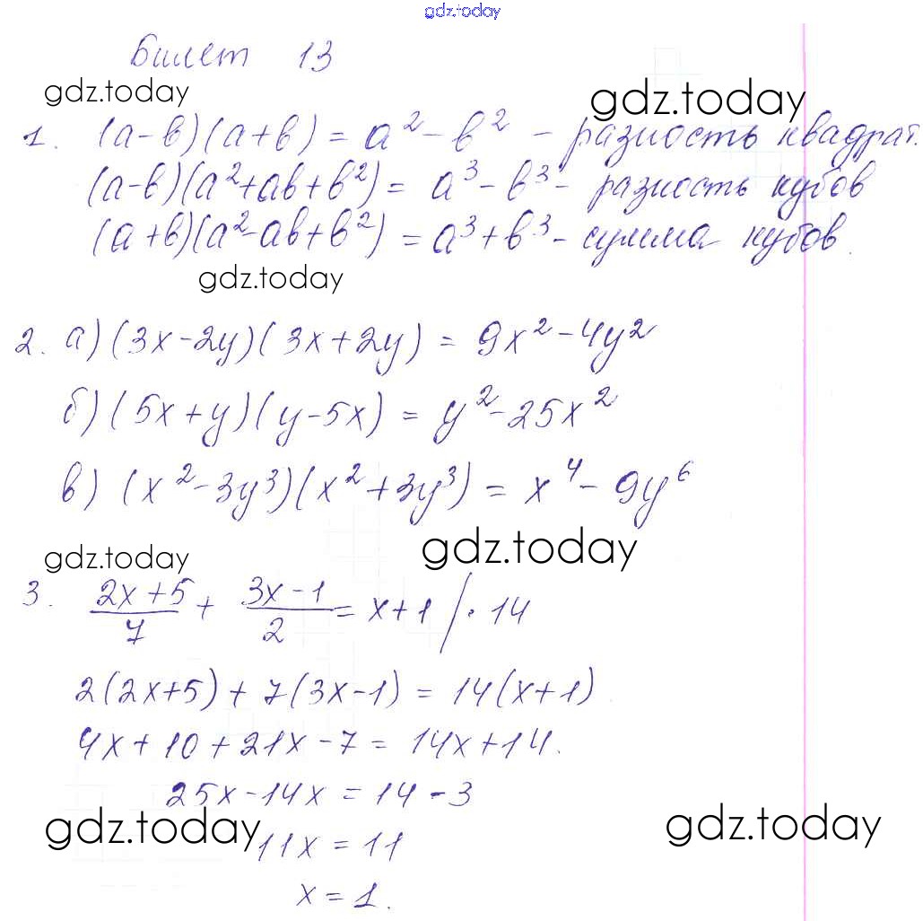 На страницах сайта gdz.today вы найдете учебный и вспомогательный материал, направленный на улучшения знаний школьной программы. ГДЗ - онлайн мир знаний Решение к билетам 13 Дидактическим материалам по Алгебре для 7 класса Звавич, Дьяконова Экзамен УМК 2018