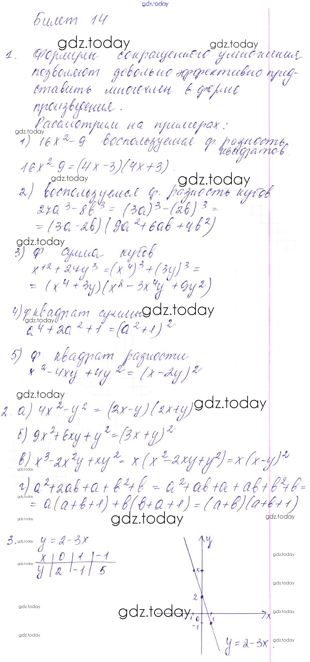 На страницах сайта gdz.today вы найдете учебный и вспомогательный материал, направленный на улучшения знаний школьной программы. ГДЗ - онлайн мир знаний Решение к билетам 14 Дидактическим материалам по Алгебре для 7 класса Звавич, Дьяконова Экзамен УМК 2018