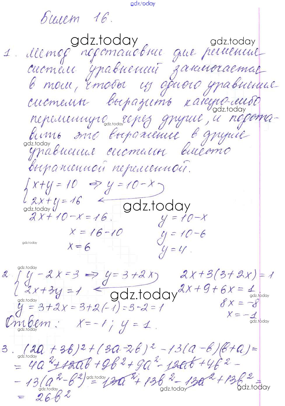 На страницах сайта gdz.today вы найдете учебный и вспомогательный материал, направленный на улучшения знаний школьной программы. ГДЗ - онлайн мир знаний Решение к билетам 16 Дидактическим материалам по Алгебре для 7 класса Звавич, Дьяконова Экзамен УМК 2018