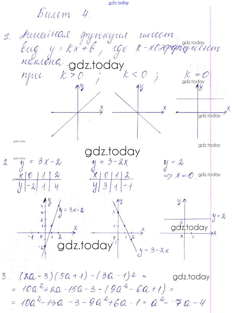 На страницах сайта gdz.today вы найдете учебный и вспомогательный материал, направленный на улучшения знаний школьной программы. ГДЗ - онлайн мир знаний Решение к билетам 4 Дидактическим материалам по Алгебре для 7 класса Звавич, Дьяконова Экзамен УМК 2018