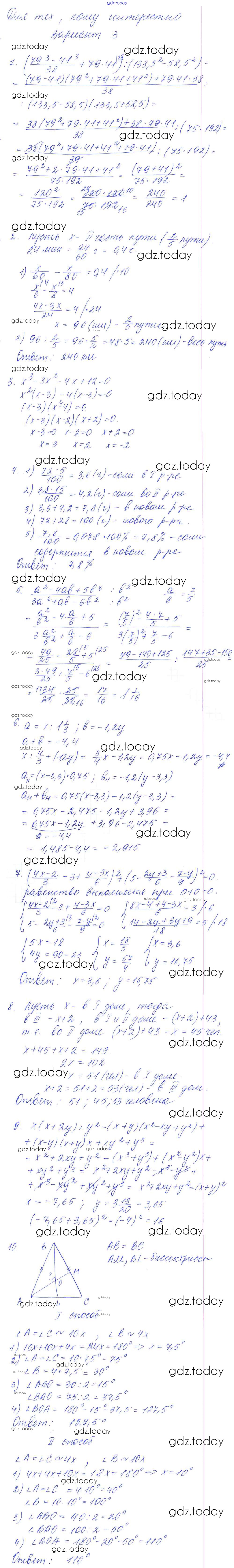 Ответы к Для тех, кому интересно (решение) Вариант 3 Дидактическим материалам по Алгебре для 7 класса Звавич, Дьяконова Экзамен УМК 2018