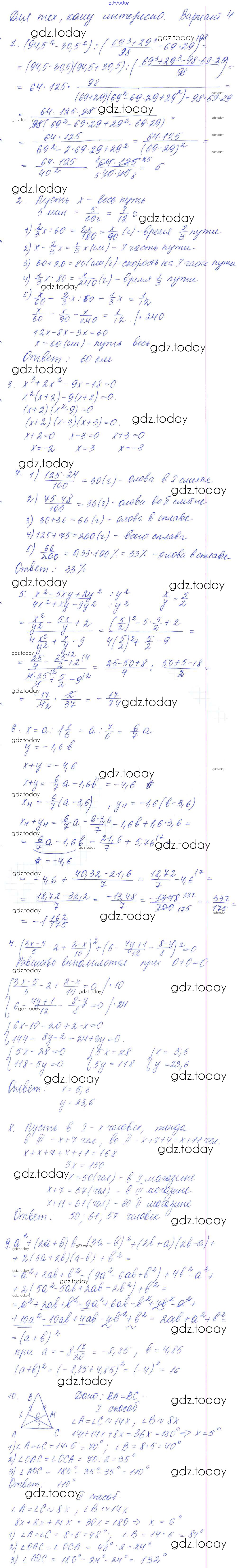 Ответы к Для тех, кому интересно (решение) Вариант 4 Дидактическим материалам по Алгебре для 7 класса Звавич, Дьяконова Экзамен УМК 2018