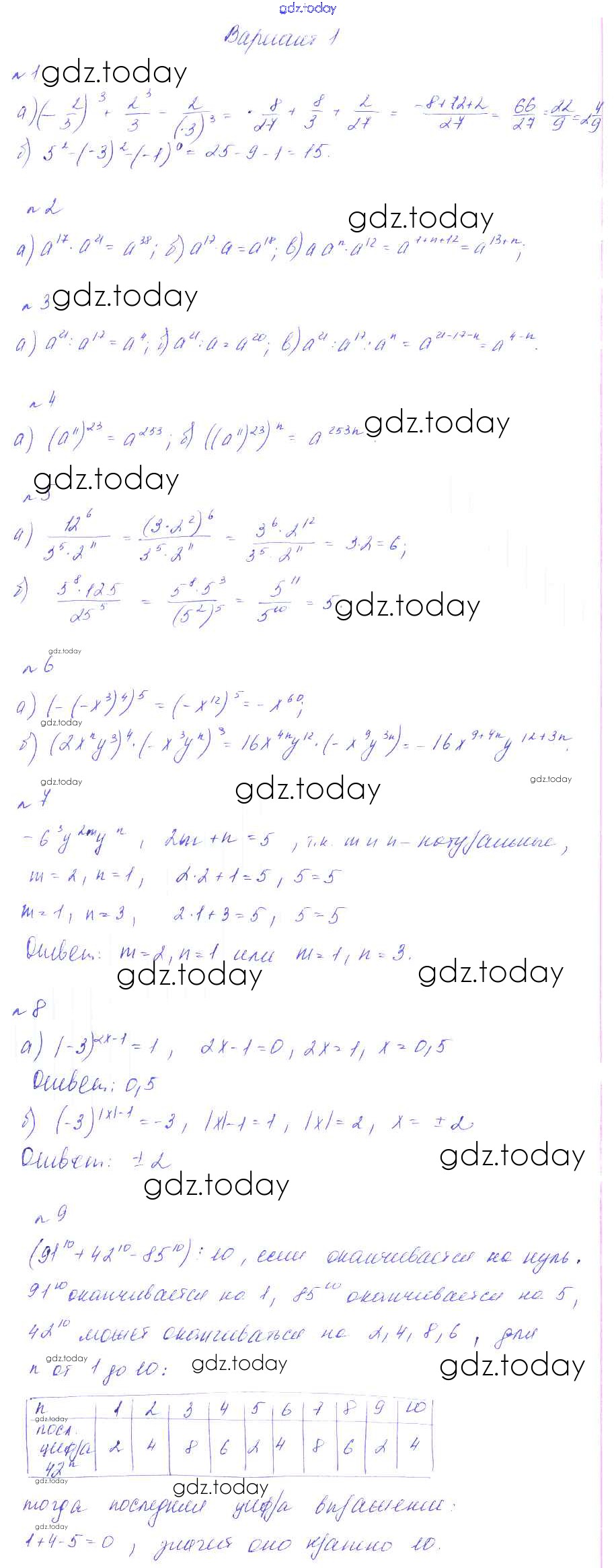 Ответы к КР-2 Решение к контрольным работам Вариант 1 Дидактическим материалам по Алгебре для 7 класса Феоктистов Углубленный уровень Мнемозина 2016