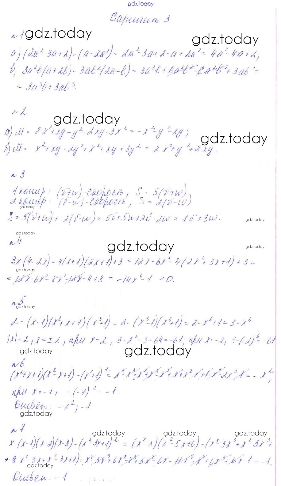 На страницах сайта gdz.today вы найдете учебный и вспомогательный материал, направленный на улучшения знаний школьной программы. ГДЗ - онлайн мир знаний КР-3 Решение к контрольным работам Вариант 3 Дидактическим материалам по Алгебре для 7 класса Феоктистов Углубленный уровень Мнемозина 2016