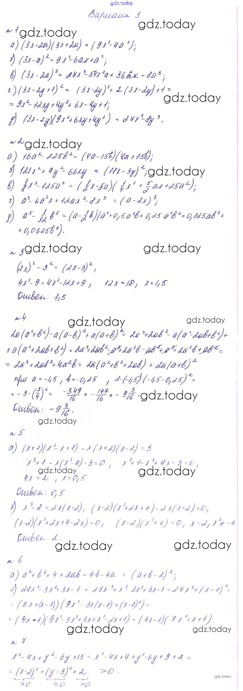 На страницах сайта gdz.today вы найдете учебный и вспомогательный материал, направленный на улучшения знаний школьной программы. ГДЗ - онлайн мир знаний КР-6 Решение к контрольным работам Вариант 3 Дидактическим материалам по Алгебре для 7 класса Феоктистов Углубленный уровень Мнемозина 2016