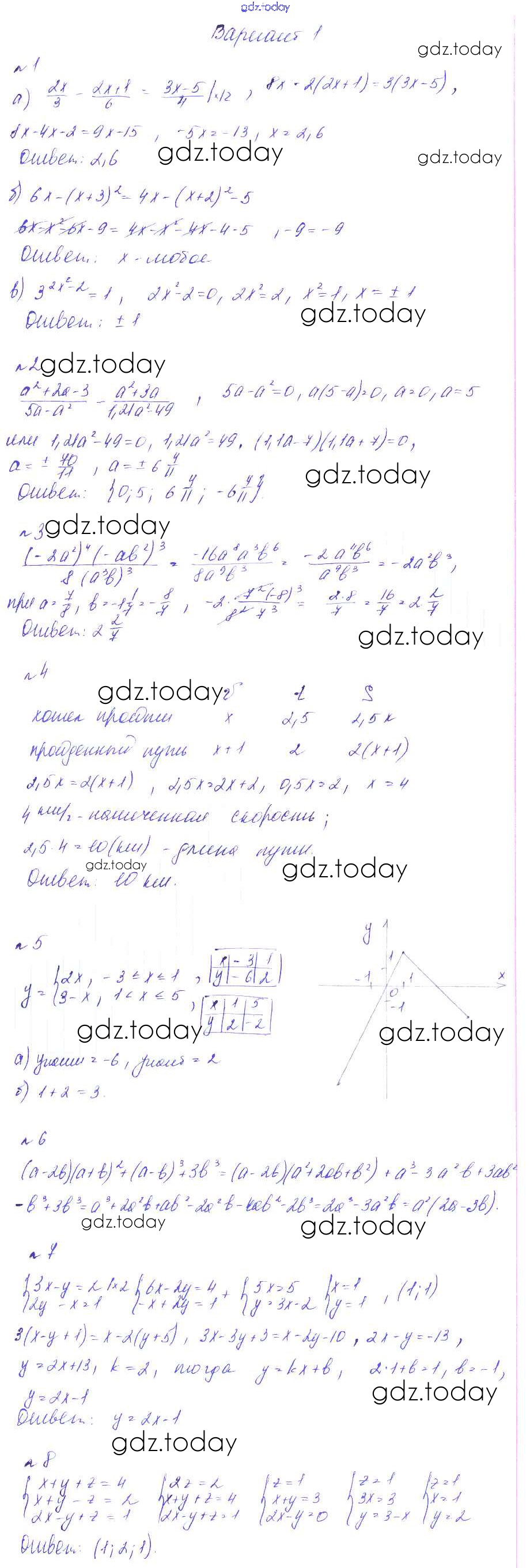 На страницах сайта gdz.today вы найдете учебный и вспомогательный материал, направленный на улучшения знаний школьной программы. ГДЗ - онлайн мир знаний Итоговая контрольная работа Решение к контрольным работам Вариант 1 Дидактическим материалам по Алгебре для 7 класса Феоктистов Углубленный уровень Мнемозина 2016