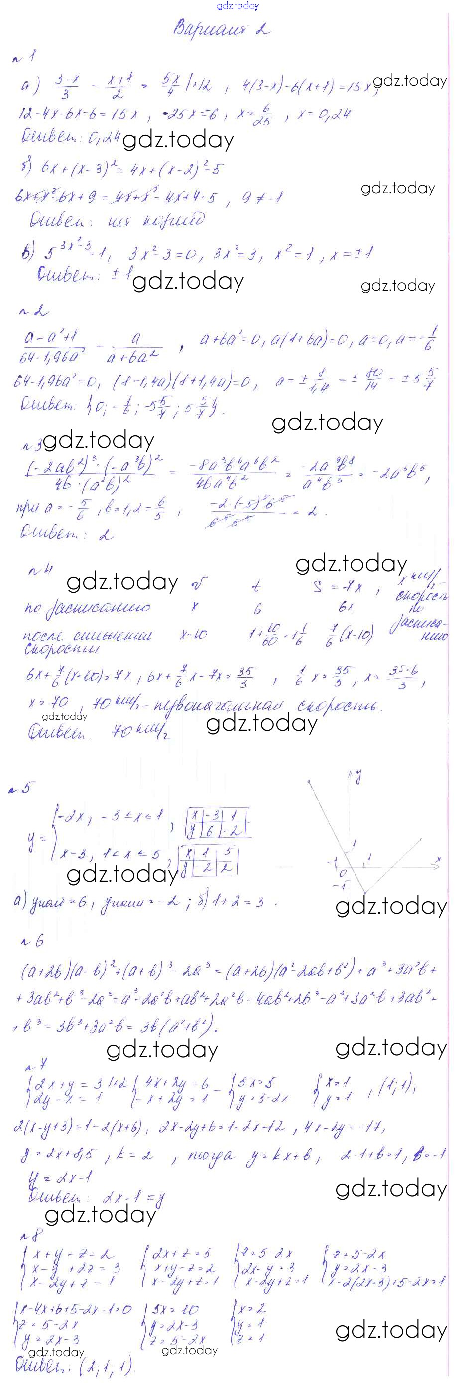 Ответы к Итоговая контрольная работа Решение к контрольным работам Вариант 2 Дидактическим материалам по Алгебре для 7 класса Феоктистов Углубленный уровень Мнемозина 2016